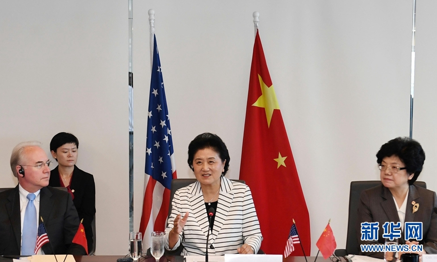 當(dāng)?shù)貢r(shí)間9月27日,國(guó)務(wù)院副總理劉延?xùn)|(中)在美國(guó)華盛頓戰(zhàn)略與國(guó)際問題研究中心出席中美衛(wèi)生合作研討會(huì)。新華社記者殷博古攝