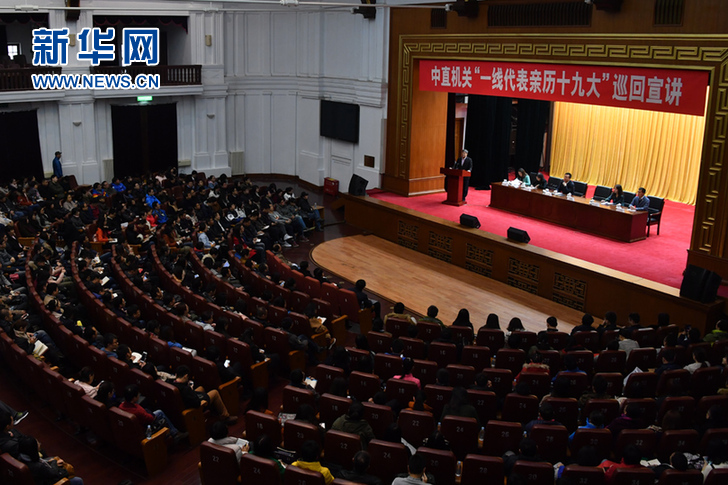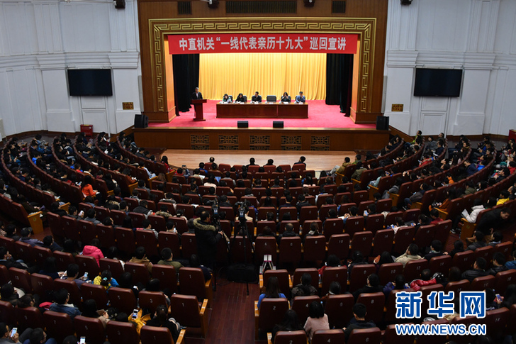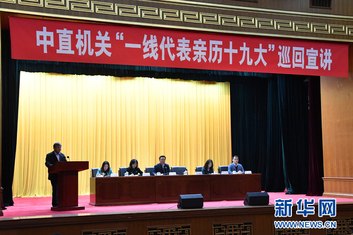 中直機關(guān)“一線代表親歷十九大”巡回宣講第三場報告會現(xiàn)場。新華社記者 徐速繪 攝