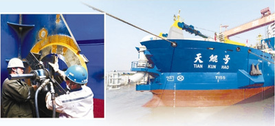 “船上鋼樁臺車安裝了4個(gè)大油缸,單個(gè)就達(dá)38噸,所有安裝誤差都只有0.2毫米”,安裝輪機(jī)車間主任沙勝紅說,“考驗(yàn)還在繼續(xù)”。輪機(jī)車間的工人全部是訓(xùn)練有素的技術(shù)員工,他們克服了難以想象的困難,硬是拿下全船高難度的設(shè)備安裝工作,質(zhì)量贏得船東、船檢的一致好評。