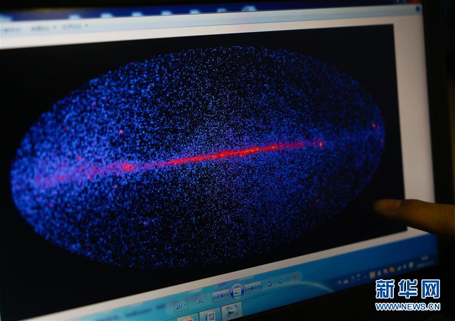 11月30日,國際權(quán)威學(xué)術(shù)期刊《自然》在線發(fā)布,暗物質(zhì)粒子探測(cè)衛(wèi)星“悟空”在太空中測(cè)量到電子宇宙射線的一處異常波動(dòng)。暗物質(zhì),一個(gè)人類追尋多年的宇宙魅影,被中國“悟空”發(fā)現(xiàn)了疑似蹤跡。(新華社記者李響攝)