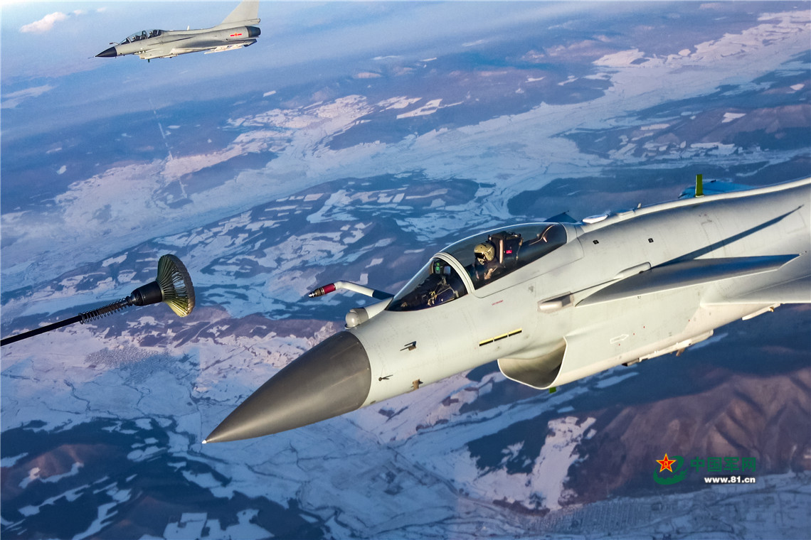 殲-10B戰(zhàn)機空中加油。