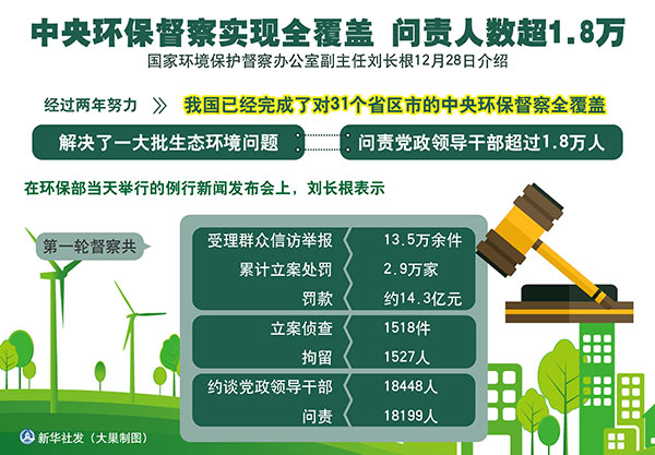 圖表:中央環(huán)保督察實(shí)現(xiàn)全覆蓋 問責(zé)人數(shù)超1.8萬 新華社發(fā) 大巢制圖