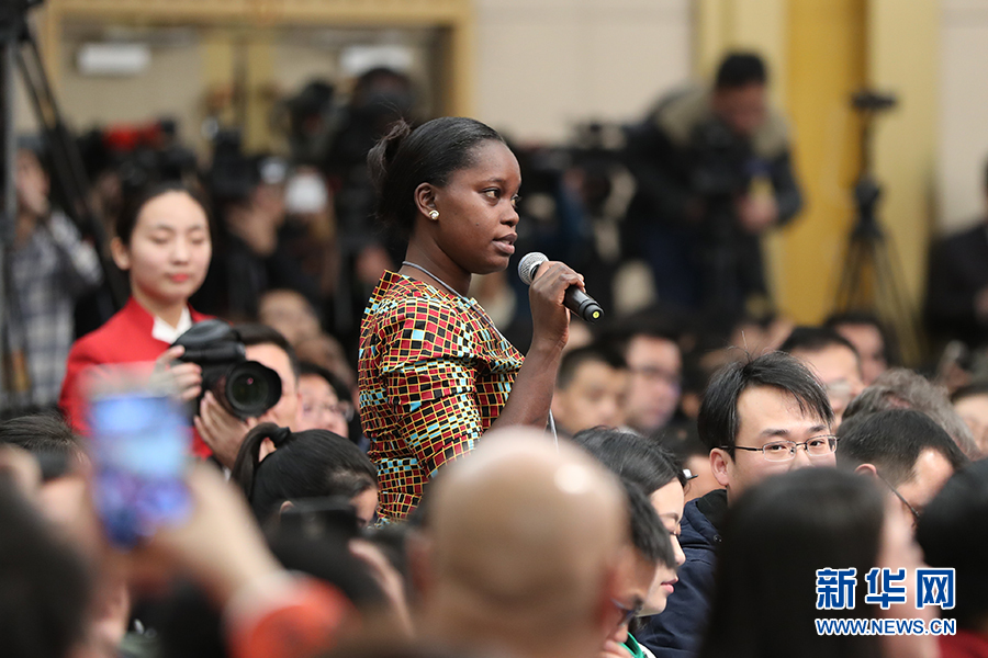 十二屆全國人大五次會議新聞中心于3月8日(星期三)10時在梅地亞中心多功能廳舉行記者會,邀請外交部部長王毅就“中國的外交政策和對外關(guān)系”的相關(guān)問題回答中外記者的提問。圖為坦桑尼亞標準報業(yè)集團記者提問。新華網(wǎng)/中國政府網(wǎng) 翟子赫 攝