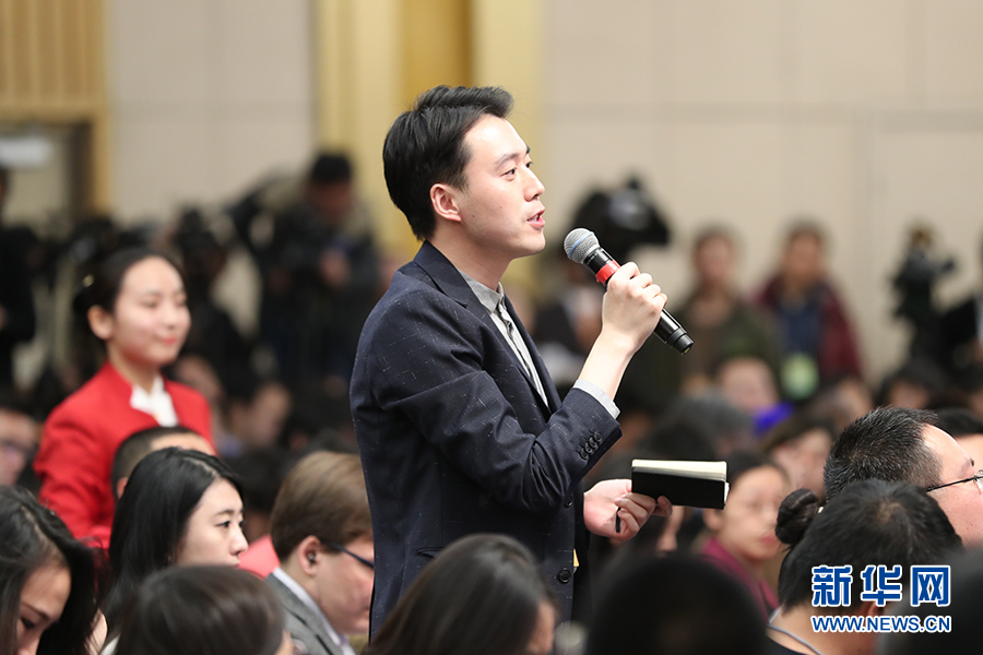 十二屆全國人大五次會議新聞中心于3月8日(星期三)10時在梅地亞中心多功能廳舉行記者會,邀請外交部部長王毅就“中國的外交政策和對外關(guān)系”的相關(guān)問題回答中外記者的提問。圖為中國新聞社記者提問。新華網(wǎng)/中國政府網(wǎng) 翟子赫 攝