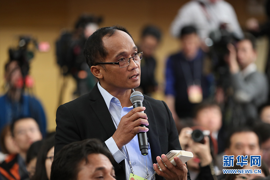 十二屆全國人大五次會議新聞中心于3月8日(星期三)10時(shí)在梅地亞中心多功能廳舉行記者會,邀請外交部部長王毅就“中國的外交政策和對外關(guān)系”的相關(guān)問題回答中外記者的提問。圖為菲律賓通訊社記者提問。新華網(wǎng)/中國政府網(wǎng) 翟子赫 攝