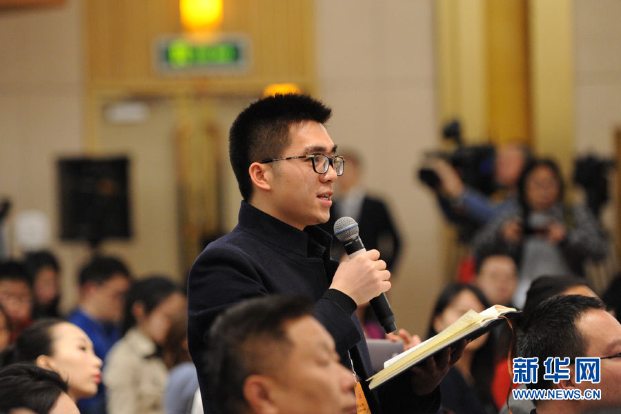 3月10日,十二屆全國人大五次會議新聞中心舉行記者會,邀請國家工商行政管理總局局長張茅就“深化商事制度改革”的相關(guān)問題回答中外記者的提問。圖為人民日報記者提問。新華網(wǎng)/中國政府網(wǎng) 王健 攝