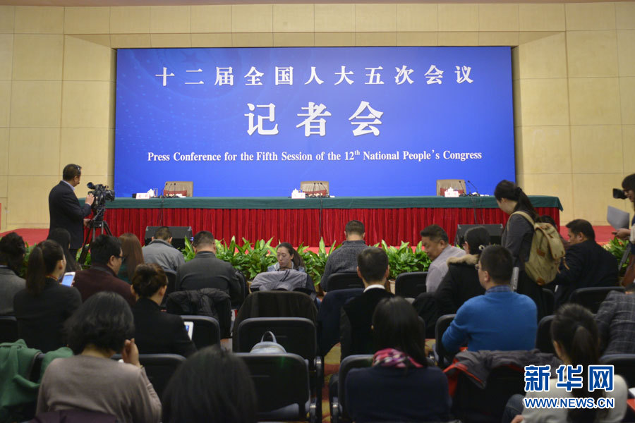 3月10日,十二屆全國人大五次會議新聞中心舉行記者會,邀請國家工商行政管理總局局長張茅就“深化商事制度改革”的相關(guān)問題回答中外記者的提問。圖為記者會現(xiàn)場。新華網(wǎng)/中國政府網(wǎng)?孫韜 攝?