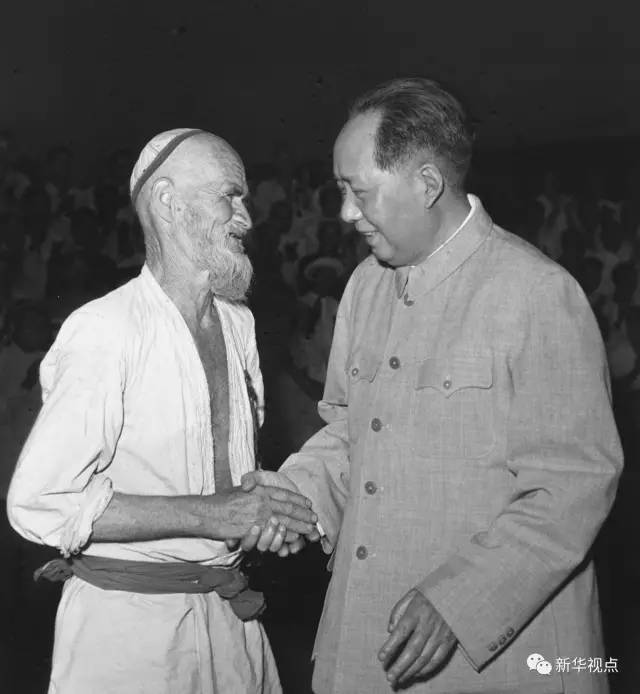 這張老照片,記錄了1958年6月28日毛澤東主席與庫爾班·吐魯木親切握手的場景。