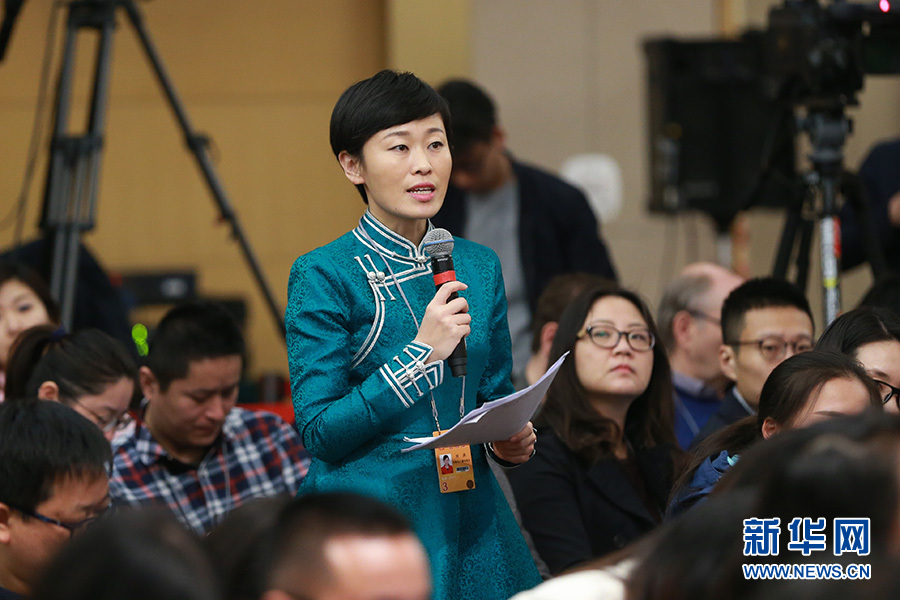 3月11日,十二屆全國人大五次會議新聞中心舉行記者會,邀請工業(yè)和信息化部部長苗圩、副部長辛國斌和總工程師、新聞發(fā)言人張峰就“推進實施‘中國制造2025’”的相關問題回答中外記者的提問。圖為內蒙古廣播電視臺記者提問。新華網/中國政府網 傅義洲 攝
