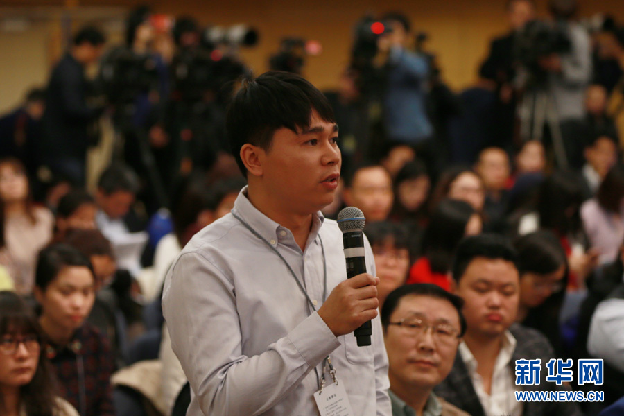 3月14日,十二屆全國人大五次會議新聞中心舉行記者會,邀請國家質(zhì)檢總局局長支樹平、副局長兼國家認(rèn)證認(rèn)可監(jiān)督管理委員會主任孫大偉、國家標(biāo)準(zhǔn)化管理委員會主任田世宏就“質(zhì)量提升”的相關(guān)問題回答中外記者的提問。圖為光明日報記者提問。新華網(wǎng)/中國政府網(wǎng) 傅義洲 攝?