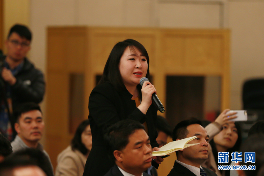 3月14日,十二屆全國人大五次會議新聞中心舉行記者會,邀請國家質(zhì)檢總局局長支樹平、副局長兼國家認證認可監(jiān)督管理委員會主任孫大偉、國家標準化管理委員會主任田世宏就“質(zhì)量提升”的相關(guān)問題回答中外記者的提問。圖為中國國際廣播電臺記者提問。新華網(wǎng)/中國政府網(wǎng) 傅義洲 攝?