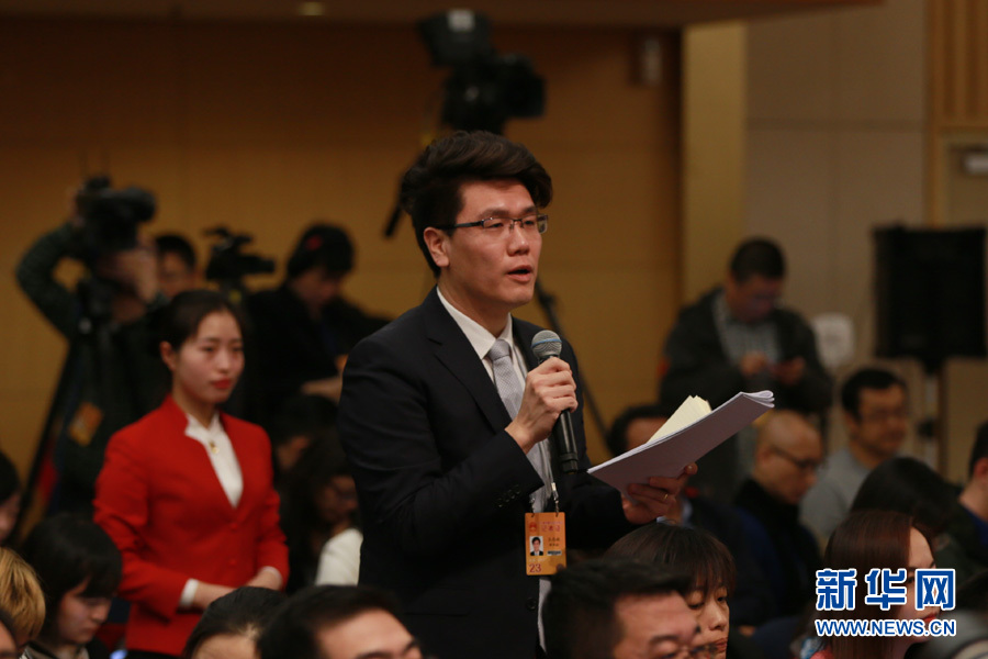3月14日,十二屆全國人大五次會議新聞中心舉行記者會,邀請國家質(zhì)檢總局局長支樹平、副局長兼國家認證認可監(jiān)督管理委員會主任孫大偉、國家標(biāo)準(zhǔn)化管理委員會主任田世宏就“質(zhì)量提升”的相關(guān)問題回答中外記者的提問。圖為新華社記者提問。新華網(wǎng)/中國政府網(wǎng) 傅義洲 攝?