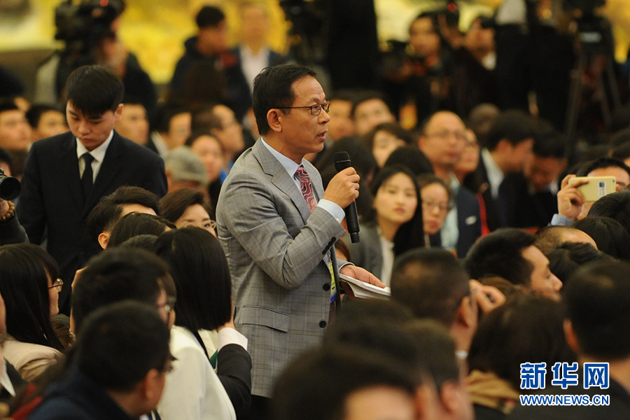 3月15日上午,國務(wù)院總理李克強(qiáng)在人民大會堂三樓金色大廳會見采訪十二屆全國人大五次會議的中外記者并回答記者提出的問題。圖為鳳凰衛(wèi)視記者提問。新華網(wǎng)/中國政府網(wǎng) 翟子赫 攝