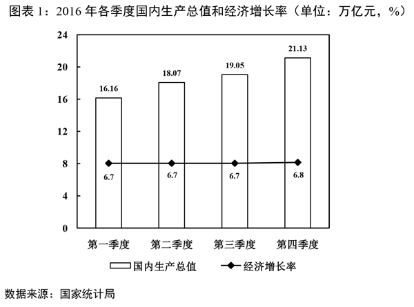 圖表1:2016年各季度國內(nèi)生產(chǎn)總值和經(jīng)濟(jì)增長率 新華社發(fā)