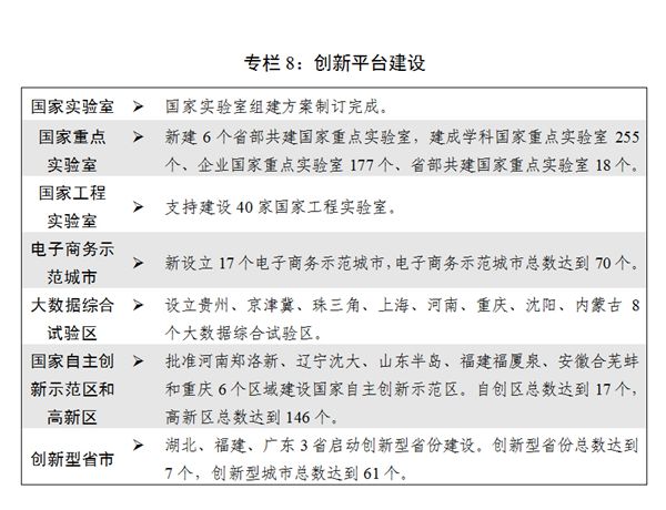 一是創(chuàng)新能力持續(xù)提升。由點(diǎn)及面、有序布局重大科技創(chuàng)新平臺建設(shè),深入推進(jìn)8個區(qū)域全面創(chuàng)新改革試驗(yàn)。北京、上海建設(shè)科技創(chuàng)新中心邁出新步伐。河北·京南、浙江、寧波3個國家科技成果轉(zhuǎn)移轉(zhuǎn)化示范區(qū)啟動建設(shè)。首個國家高速列車技術(shù)創(chuàng)新中心建成。完全自主知識產(chǎn)權(quán)中國標(biāo)準(zhǔn)高速列車正式投入運(yùn)營。建成世界最大單口徑射電望遠(yuǎn)鏡(FAST)等一批重大科技基礎(chǔ)設(shè)施,在量子通信、航空航天等方面取得一批重大科技成果。國家科技重大專項(xiàng)深入實(shí)施,科技創(chuàng)新2030-重大項(xiàng)目遴選確定。大力推動企業(yè)技術(shù)創(chuàng)新,落實(shí)好研發(fā)費(fèi)用加計扣除、股權(quán)激勵和技術(shù)入股所得稅優(yōu)惠、完善高新技術(shù)企業(yè)認(rèn)定辦法等政策。
