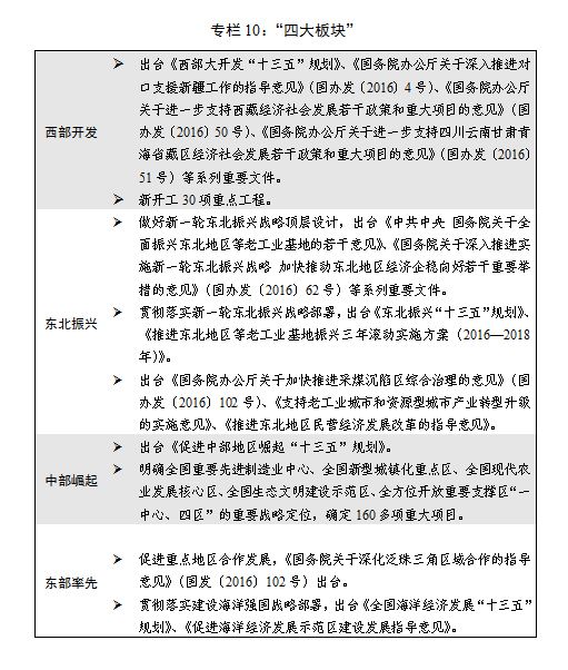 二是區(qū)域發(fā)展總體戰(zhàn)略和差別化區(qū)域政策深入實(shí)施。加快新一輪西部大開發(fā),一批重大標(biāo)志性工程開工建設(shè),中西部地區(qū)經(jīng)濟(jì)繼續(xù)保持較快增長。出臺實(shí)施新一輪東北振興戰(zhàn)略和若干重大政策舉措,國企改革、投資營商環(huán)境改善等重點(diǎn)領(lǐng)域改革取得新進(jìn)展。明確中部地區(qū)“一中心、四區(qū)”重要戰(zhàn)略定位,長江中游城市群重要增長極作用強(qiáng)化。東部地區(qū)轉(zhuǎn)型升級、開放創(chuàng)新、陸海統(tǒng)籌優(yōu)勢持續(xù)發(fā)揮,區(qū)域發(fā)展新動能新亮點(diǎn)不斷涌現(xiàn)。出臺促進(jìn)區(qū)域協(xié)調(diào)發(fā)展的指導(dǎo)意見,差別化區(qū)域政策體系持續(xù)完善。國家綜合配套改革試驗(yàn)區(qū)、國家級新區(qū)及各類開發(fā)區(qū)、承接產(chǎn)業(yè)轉(zhuǎn)移示范區(qū)、產(chǎn)城融合示范區(qū)、臨空經(jīng)濟(jì)示范區(qū)等重要功能平臺建設(shè)有序推進(jìn)。加快革命老區(qū)、民族地區(qū)、邊疆地區(qū)和集中連片特困地區(qū)脫貧攻堅(jiān)。完善支持政策措施,推進(jìn)新疆、西藏、四省藏區(qū)經(jīng)濟(jì)社會發(fā)展和長治久安。