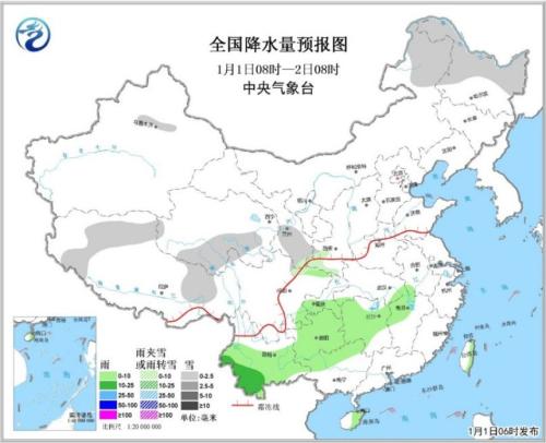 1日08時(shí)至2日08時(shí),全國(guó)范圍降水較弱。內(nèi)蒙古東北部、黑龍江北部和東部、西藏西部和東部、青海南部、甘肅東南部等地的部分地區(qū)有陣雪或小雪,局地有中雪;西南地區(qū)南部和東部、江南西部等地有小雨,云南西南部的部分地區(qū)有中雨;內(nèi)蒙古東部、遼寧等地有4~6級(jí)風(fēng)。南海東北部和西南部有6~8級(jí)、陣風(fēng)9級(jí)東北風(fēng)。