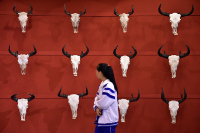 ▲2017年12月28日,觀眾在廣州藝術(shù)博物院觀看“牦牛走進羊城——西藏牦牛文化展”展品。新華社記者梁旭攝