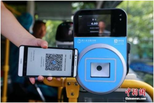 2016年8月16日,杭州民眾刷支付寶乘坐公交車。中新社發(fā) 許康平 攝