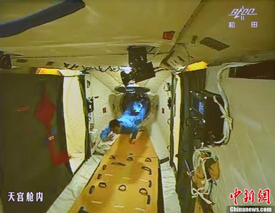 圖為在張曉光的協(xié)助下,聶海勝順利開啟并進入天宮一號艙門(資料圖)。中新社發(fā) 秦憲安 攝
