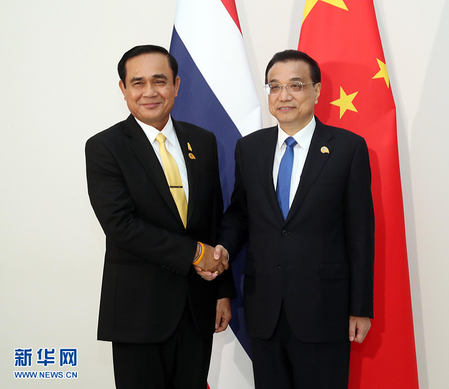 李克強(qiáng)表示,中泰一家親深入人心,兩國(guó)關(guān)系發(fā)展勢(shì)頭很好,各領(lǐng)域合作持續(xù)推進(jìn)。上個(gè)月,中泰鐵路項(xiàng)目一期工程動(dòng)工,標(biāo)志著中泰合作邁上新臺(tái)階。希望雙方再接再厲,推動(dòng)項(xiàng)目順利實(shí)施,并帶動(dòng)中泰其他領(lǐng)域合作向前邁進(jìn)。中方愿加強(qiáng)“一帶一路”倡議同泰國(guó)“東部經(jīng)濟(jì)走廊”等發(fā)展戰(zhàn)略對(duì)接,提升中泰貿(mào)易便利化水平,加強(qiáng)經(jīng)貿(mào)、旅游、科技等領(lǐng)域合作,更好實(shí)現(xiàn)互利共贏。