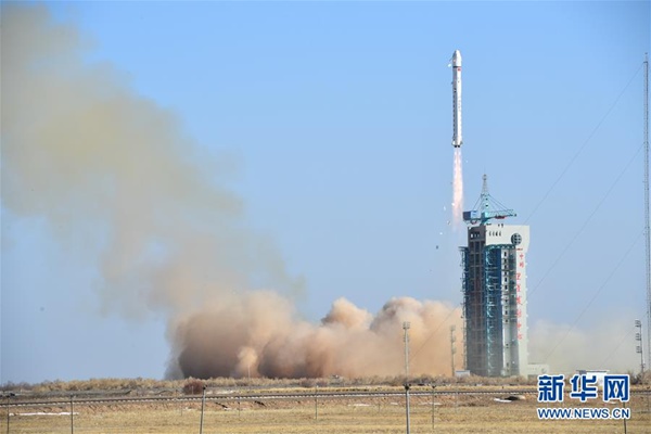 2018年1月13日15時(shí)10分,我國(guó)在酒泉衛(wèi)星發(fā)射中心用長(zhǎng)征二號(hào)丁運(yùn)載火箭,成功將陸地勘查衛(wèi)星三號(hào)發(fā)射升空,衛(wèi)星進(jìn)入預(yù)定軌道。新華社發(fā)(汪江波 攝)