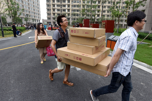 幾個(gè)新就業(yè)大學(xué)畢業(yè)生正在搬進(jìn)公租房 王定昶 攝