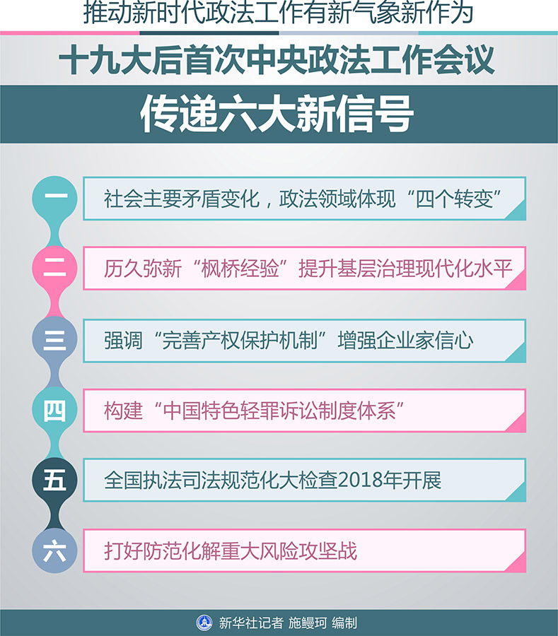 新華社北京1月23日電 題:推動新時代政法工作有新氣象新作為——十九大后首次中央政法工作會議傳遞六大新信號