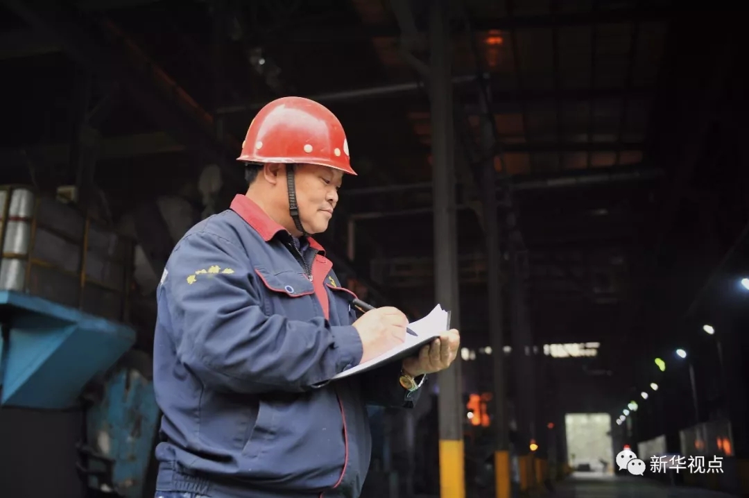 ↑華翔精密熔煉工程師池躍峰在車間門口記錄(2017年11月1日攝)。他是一位在熔煉行業(yè)30多年的老鑄工。新華社發(fā)(楊晨光 攝)