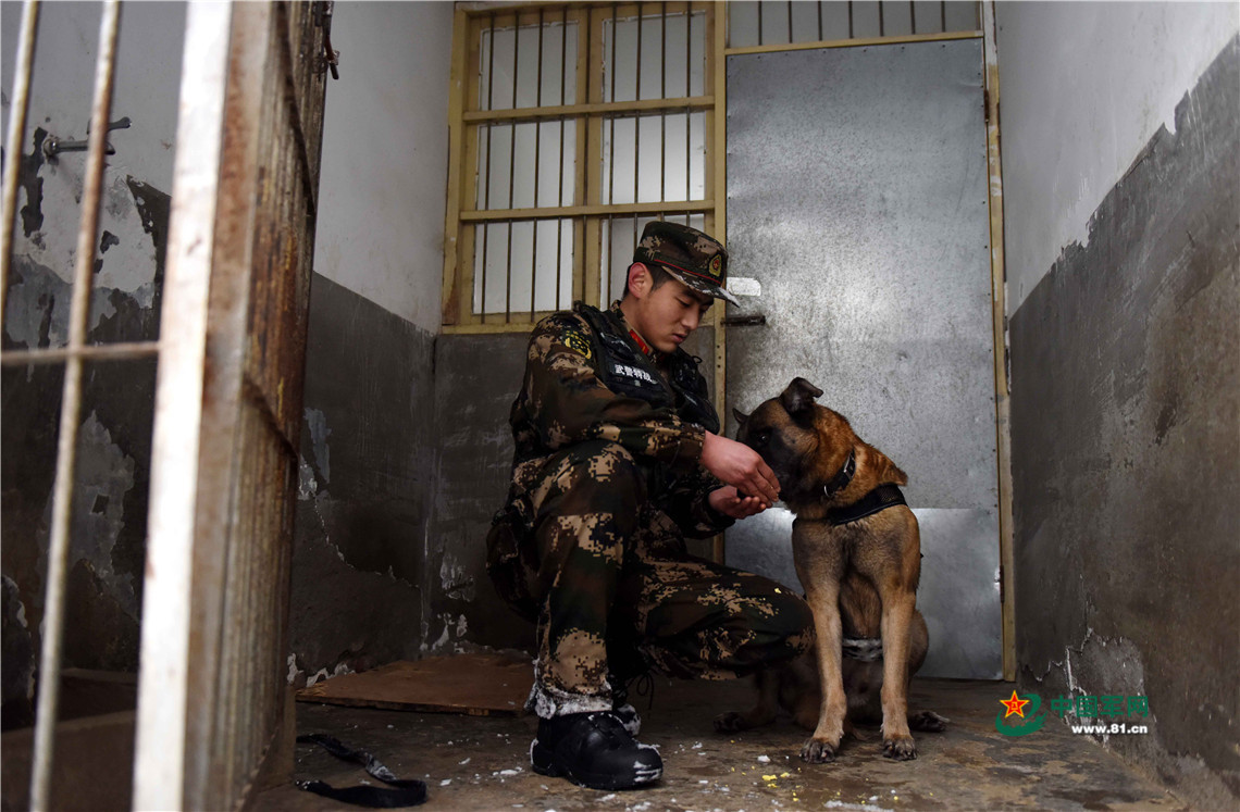 1月27日,武警安徽總隊機(jī)動支隊警犬班班長王營廣在給警犬“魯克”喂食煮雞蛋。