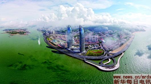 這是廈門(mén)演武大橋沿線及鼓浪嶼(拼接照片)。新華社記者姜克紅攝