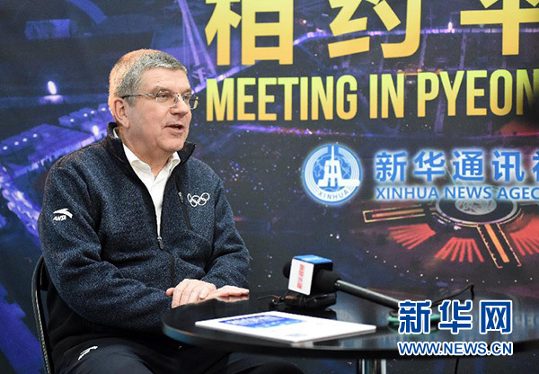2月12日下午,國際奧委會(huì)主席巴赫到平昌冬奧會(huì)主新聞中心新華社發(fā)稿中心看望新華社采編人員,并在接受專訪時(shí)現(xiàn)學(xué)中文“春節(jié)快樂”向中國人民問好。圖為巴赫在演播室接受新華社記者專訪。(2月12日攝) 新華社記者 畢曉洋 攝