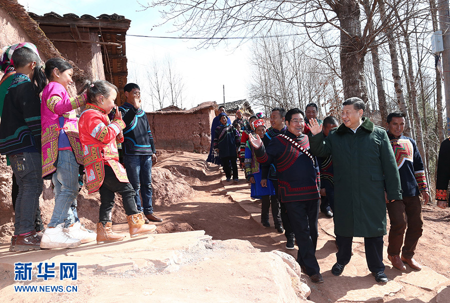 2月11日上午,習(xí)近平總書(shū)記驅(qū)車(chē)2個(gè)多小時(shí),從西昌市來(lái)到位于大涼山深處的昭覺(jué)縣三岔河鄉(xiāng)三河村、解放鄉(xiāng)火普村,走進(jìn)彝族貧困群眾家中,看實(shí)情、問(wèn)冷暖、聽(tīng)心聲,同當(dāng)?shù)馗刹咳罕姽采叹珳?zhǔn)脫貧之策。新華社記者 鞠鵬 攝