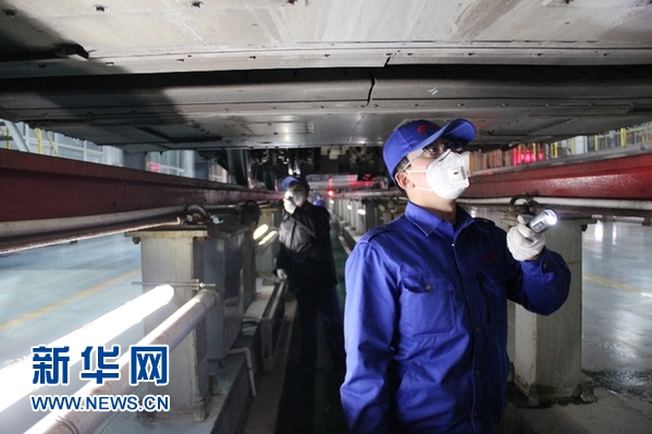 一同下到檢修道的楊碩提醒記者,在車(chē)底檢修的兩名小伙兒使用的手電筒可“大有玄機(jī)”。它在照明的同時(shí)還一直在錄像,相關(guān)資料會(huì)上傳到系統(tǒng)里,由電腦再次進(jìn)行智能檢測(cè)。