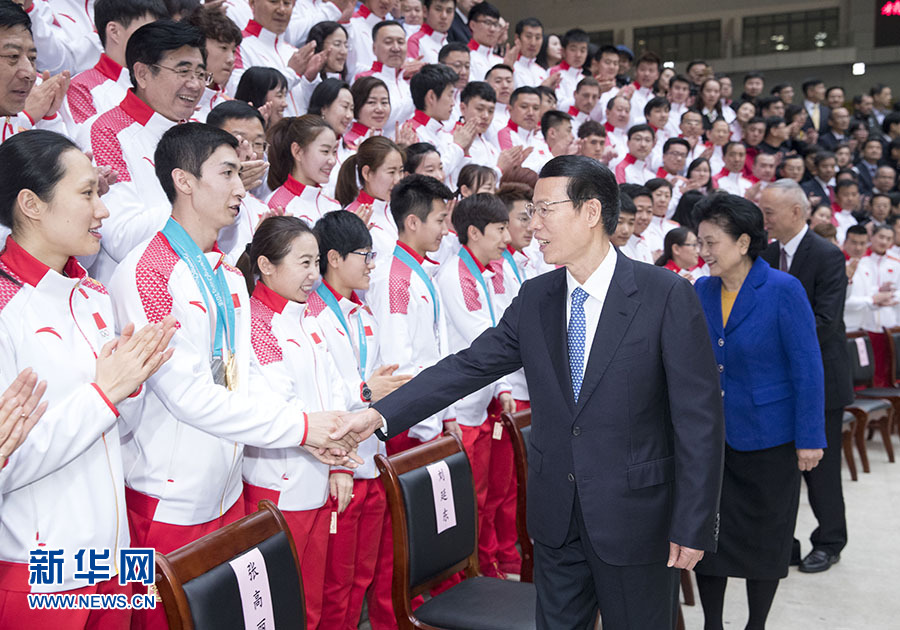 2月27日,國務(wù)院副總理、第24屆冬季奧林匹克運動會工作領(lǐng)導(dǎo)小組組長張高麗在北京會見載譽歸來的平昌冬奧會中國體育代表團。新華社記者王曄攝