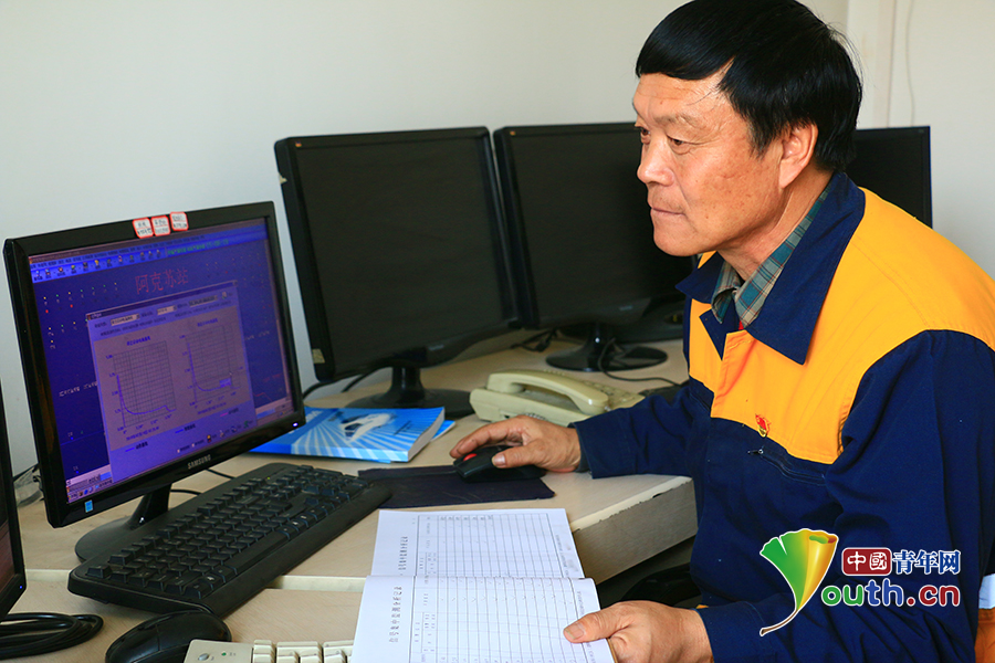邰芳鵬年近60歲,雖然體力上不如年輕人,但他從來不服輸。如今,南疆鐵路已升級為計(jì)算機(jī)聯(lián)鎖設(shè)備,邰芳鵬也緊跟時(shí)代步伐,學(xué)習(xí)計(jì)算機(jī)操作。現(xiàn)在他對計(jì)算機(jī)監(jiān)測設(shè)備也能進(jìn)行熟練操作和分析。中國青年網(wǎng)通訊員姚旭東 攝