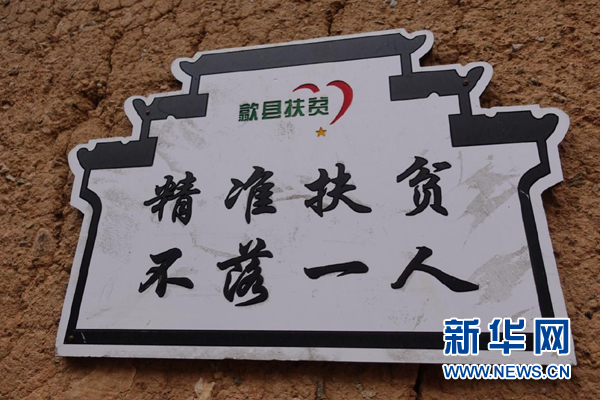 貼在村道旁的“精準扶貧”標語。新華網(wǎng) 卓越 攝