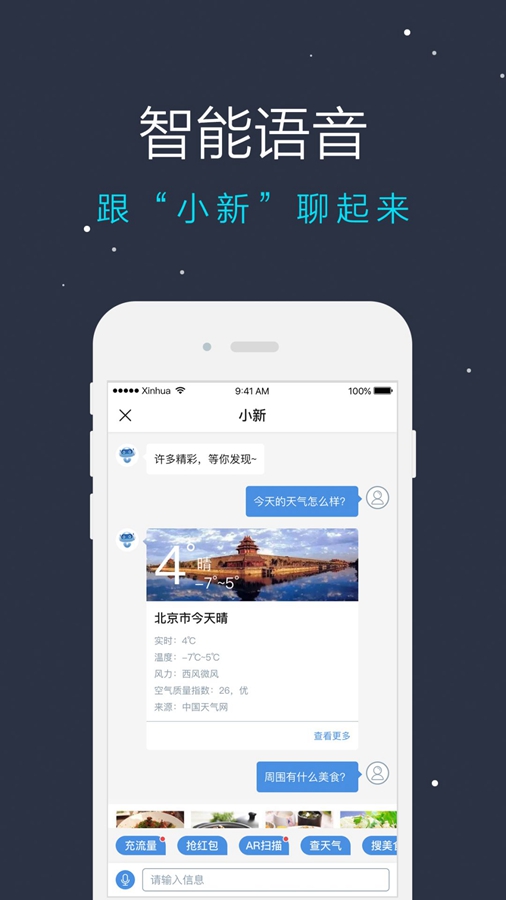 據(jù)悉,新華社客戶端還將進(jìn)一步向便民服務(wù)拓展,并接入智能語(yǔ)音交互,用戶可隨時(shí)語(yǔ)音呼叫“小新”,有問(wèn)必答。