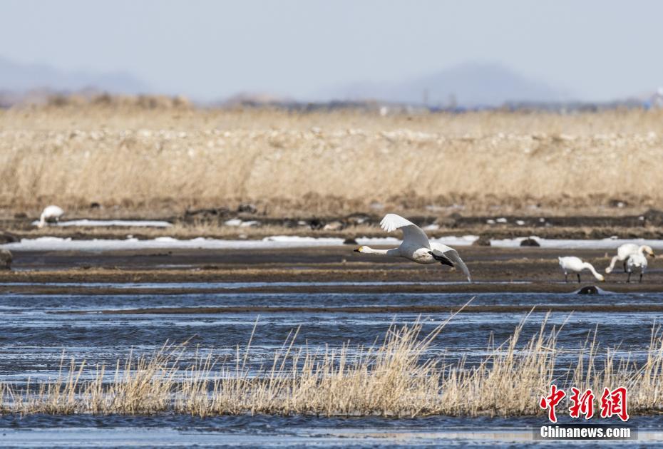 3月20日,天鵝飛過湖面。日前,內蒙古自治區(qū)呼倫貝爾市陳巴爾虎旗陸續(xù)迎來大量北歸天鵝。據(jù)了解,每年四月份,成群的天鵝從中國南方遷徙到呼倫貝爾產(chǎn)卵繁殖,而今年三月中旬起,陳巴爾虎旗境內便迎來大量回歸天鵝,實屬罕見。中新社記者 武軍 攝