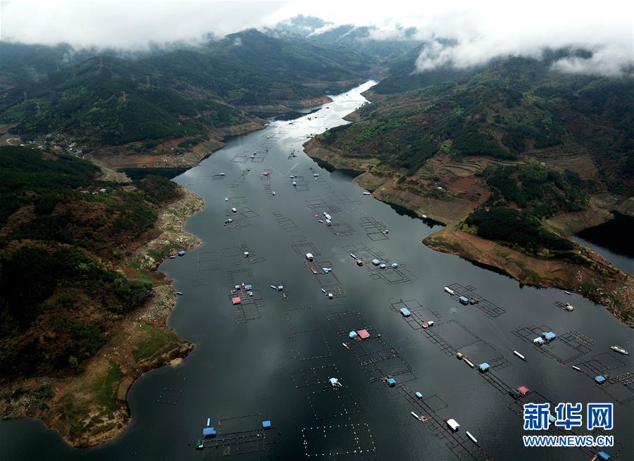 這是無人機拍攝的天生橋庫區(qū)紅水河水上“田園”景觀(3月28日攝)。春耕春種時節(jié),在廣西隆林各族自治縣天生橋庫區(qū),當地農民發(fā)展的水上養(yǎng)魚場景與紅水河兩岸景色交相融合,構成一幅幅美麗的春日畫卷。新華社記者張愛林攝