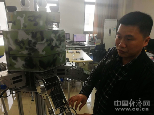 蔣剛介紹“龍騎士”機(jī)器人。經(jīng)濟(jì)日報(bào)-中國經(jīng)濟(jì)網(wǎng)記者 佟明彪/攝
