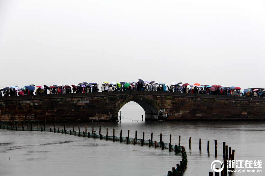4月5日,清明小長假首日,杭州細雨綿綿,西湖景區(qū)游客絡(luò)繹不絕。杭城雖降雨降溫,但西湖景區(qū)前來賞花踏青的游客如潮,斷橋似人橋。(浙江在線拍友 里爾 柱子 攝)