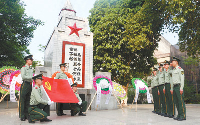清明之際,廣西南寧,武警官兵在烈士紀念碑前重溫入黨誓詞。李世近 攝(人民視覺)