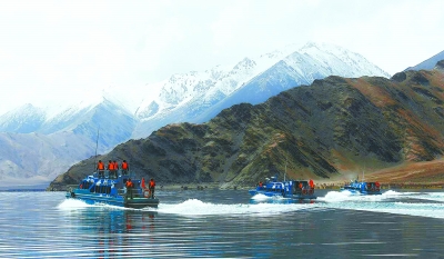 在中印邊境海拔4250米的班公湖,我軍使用的新型邊防巡邏艇