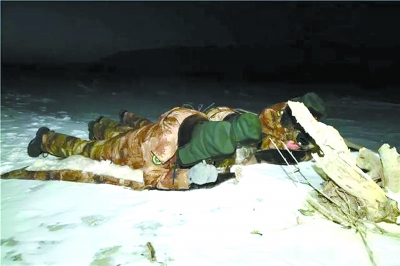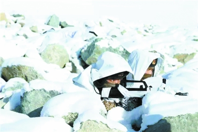 戰(zhàn)士身著新式雪地偽裝服潛伏