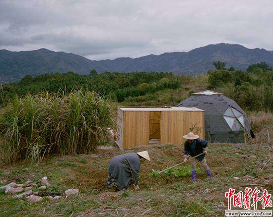3月中旬,福建省福州市閩侯縣剛剛下過一場大雨??h北部關(guān)中村山腳下的農(nóng)田里,兩個穿著格子襯衫、抓絨衣的年輕人正用不太熟練的動作揮著鋤頭翻地。對于居住在半山腰一座圓頂木屋的唐冠華和妻子邢振來說,這是再平常不過的畫面。然而兩年前,他們從青島來到關(guān)中村建立“南部生活”共識社區(qū)時,這里還是一片難覓棲身之所的荒地。