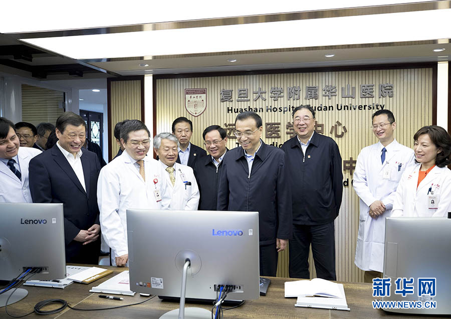 李克強(qiáng)來(lái)到華山醫(yī)院,通過(guò)互聯(lián)網(wǎng)遠(yuǎn)程會(huì)診系統(tǒng)與青海果洛、云南騰沖、新疆喀什的醫(yī)務(wù)人員對(duì)話,詢(xún)問(wèn)還有什么困難。他說(shuō),中西部地區(qū)尤其是農(nóng)村貧困地區(qū)優(yōu)質(zhì)醫(yī)療資源缺乏,要按照以人民為中心的發(fā)展思想的要求,在繼續(xù)改善中西部地區(qū)中心醫(yī)院檢測(cè)設(shè)施的同時(shí),積極發(fā)展“互聯(lián)網(wǎng)+醫(yī)療”,電信部門(mén)要為此通專(zhuān)線、提網(wǎng)速,醫(yī)衛(wèi)部門(mén)要更大發(fā)掘優(yōu)質(zhì)醫(yī)療資源的潛能,讓好醫(yī)生在中西部基層也能“觸屏可及”。李克強(qiáng)還來(lái)到徐匯區(qū)江南新村,對(duì)這里實(shí)行社區(qū)醫(yī)養(yǎng)結(jié)合,幫助老人們居家養(yǎng)老表示贊許。