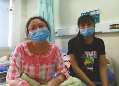 為防止肺部感染,術(shù)后的戴蕊和媽媽都戴著口罩。圖片來源:華西都市報
