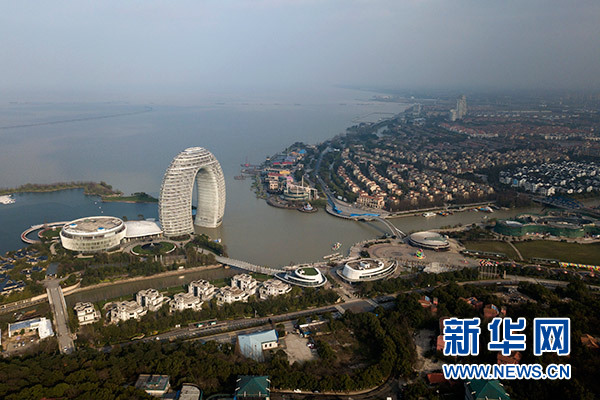 俯瞰浙江湖州太湖旅游度假區(qū)(3月21日無人機拍攝)。新華社記者 黃宗治 攝