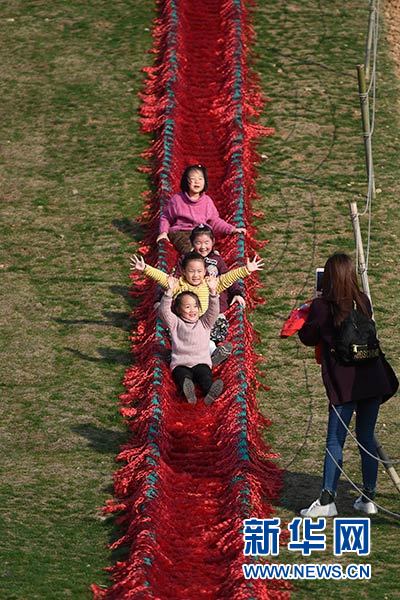 小朋友在湖州市吳興區(qū)妙西鎮(zhèn)原鄉(xiāng)小鎮(zhèn)體驗滑草(3月10日攝)。新華社記者 黃宗治 攝